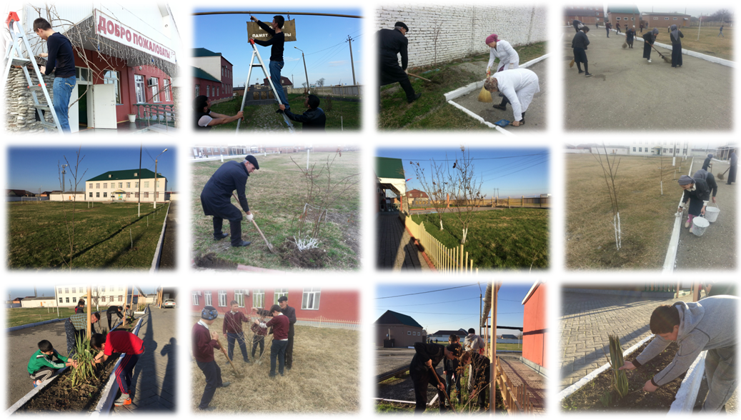 Проведена акция «Зеленый друг – здоровье и эстетика», в ходе которой учащиеся 5-10 классов вместе с юными лесоводами посадили 142 неплодовых и 12 плодовых саженцев на пришкольном земельном участке, площадь посадки - 320 кв. м. В обеспечении школы плодовыми саженцами приняли участие родители учащихся, которые работают в Министерстве природных ресурсов и охраны окружающей среды Чеченской Республики.