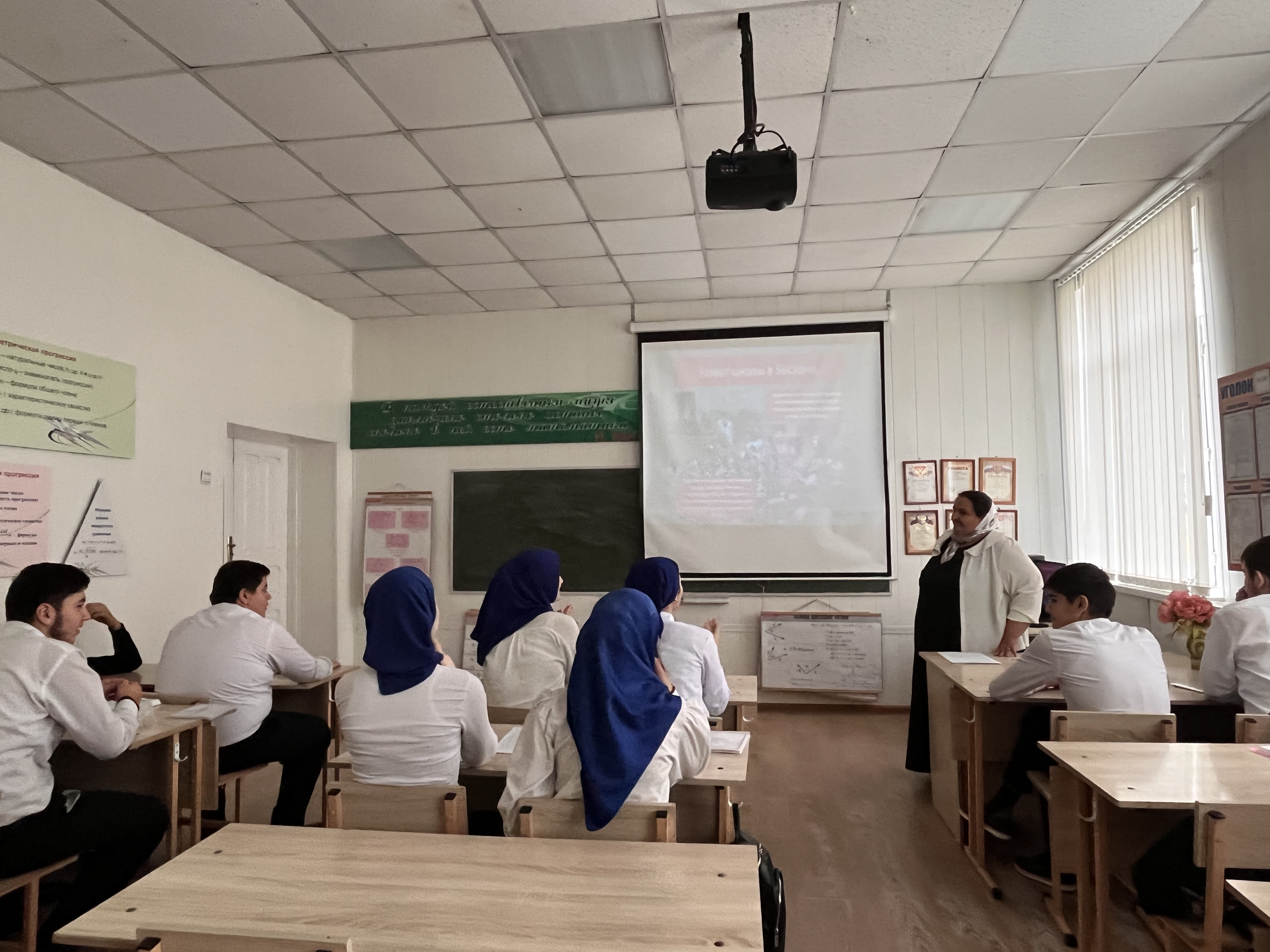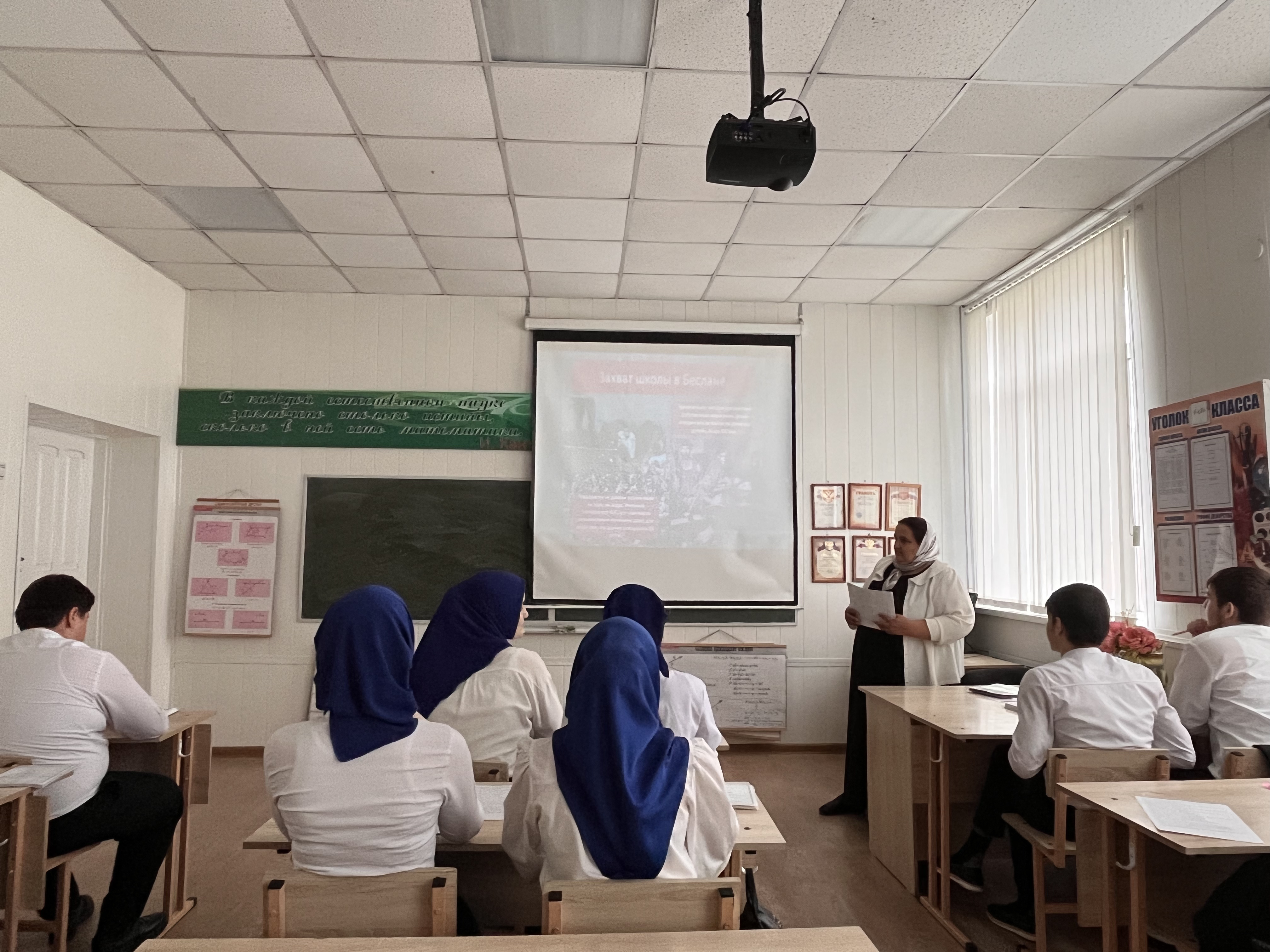 Учителя МБОУ «СОШ № 3 с. Алхан-Юрт» Садулаев М-А.А и Уматгериева З.В. в 9-11 классах провели урок-памяти «Трагедия Беслана».