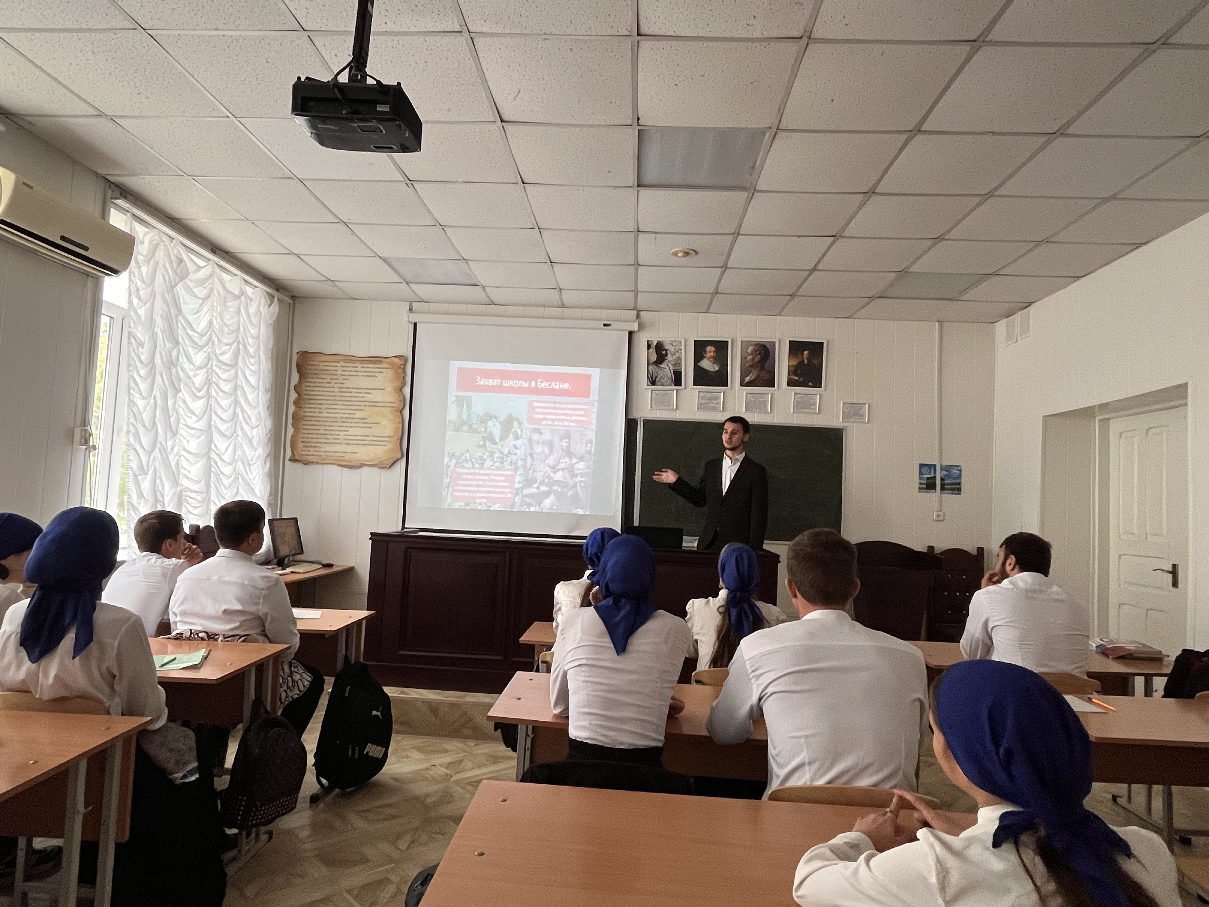 С помощью презентации ученики перенеслись на 15 лет назад, увидели на фотографиях ничем не прикрытое горе людей, потерявших своих родных, узнали о героических поступках учителей и спецназовцев, спасавших заложников. Эта трагедия никого не оставила равнодушным, рассказ о тех событиях школьники слушали со слезами на глазах.