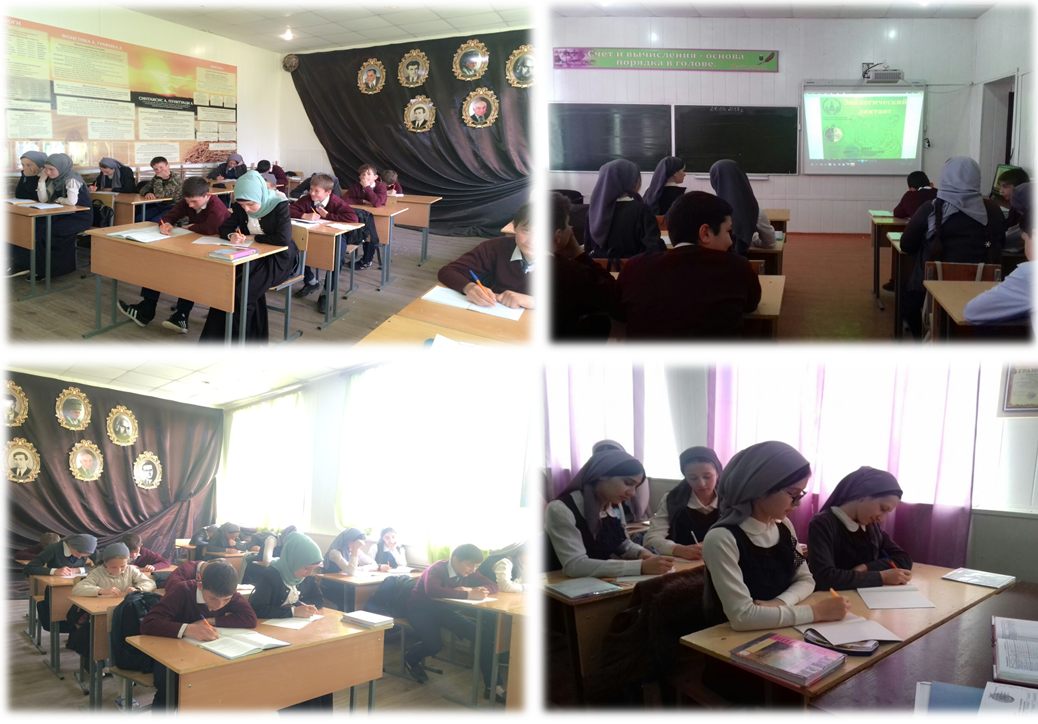 22.04.2017На основании письма Министерства Образования и науки ЧР за № 677/08-32 от 14.04 2017 г. « О проведении Экологического урока и диктанта»