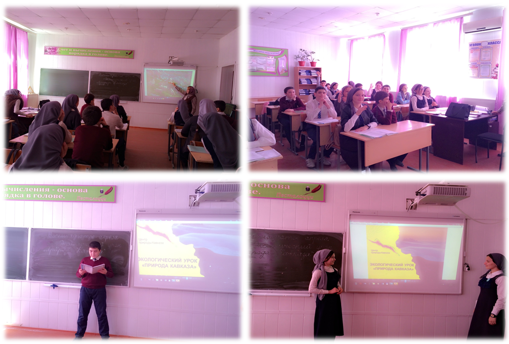 Тематический урок познакомил учащихся с национальными природоохранными проектами, которые реализуются на территории ЧР, и сохранившимися редкими видами флоры и фауны: европейским зубром, кавказским туром, беркутом.Уроки прошли в формате интеллектуальной игры, учащимся которой предстояло проверить свои знания о природе родного края