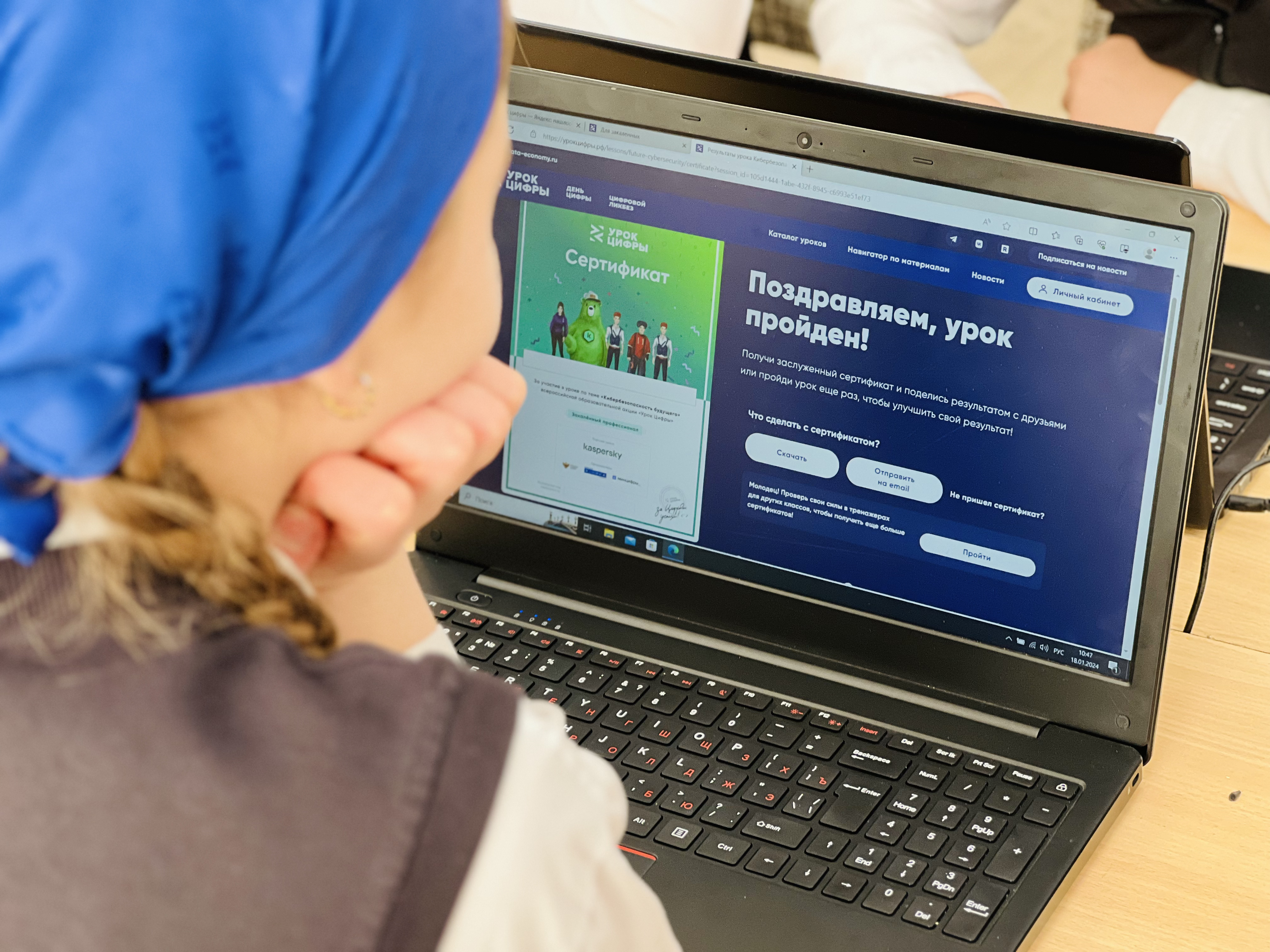 На уроке обучающиеся познакомились с общими понятиями кибербезопасности, с основными проблемами и задачами, которые стоят перед сотрудниками области кибербезопасности. Пятиклассники смогли погрузиться в современные кибертехнологии, познакомились с профессиональной деятельностью в области технологий, связанных с кибербезопасностью.