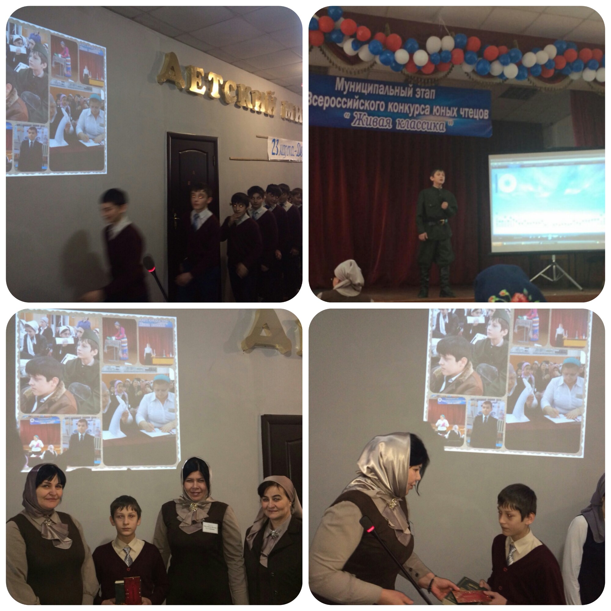 Учащийся 7а класса Ахаев Халид, занявший 2-е место в конкурсе «Живая классика», награжден почетной грамотой и ценными подарками. На конкурсе, проходившем в актовом зале гимназии № 5 г. Урус-Мартан 16 марта 2015 года, Ахаев Халид выступил с произведением К.Паустовского «Струна».