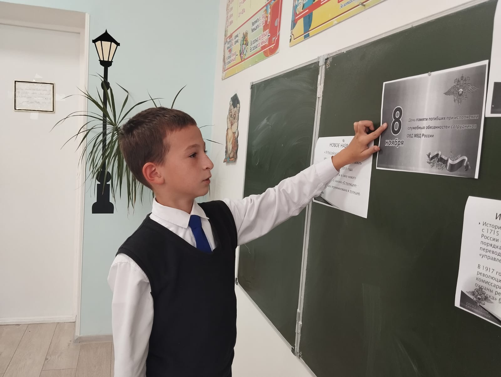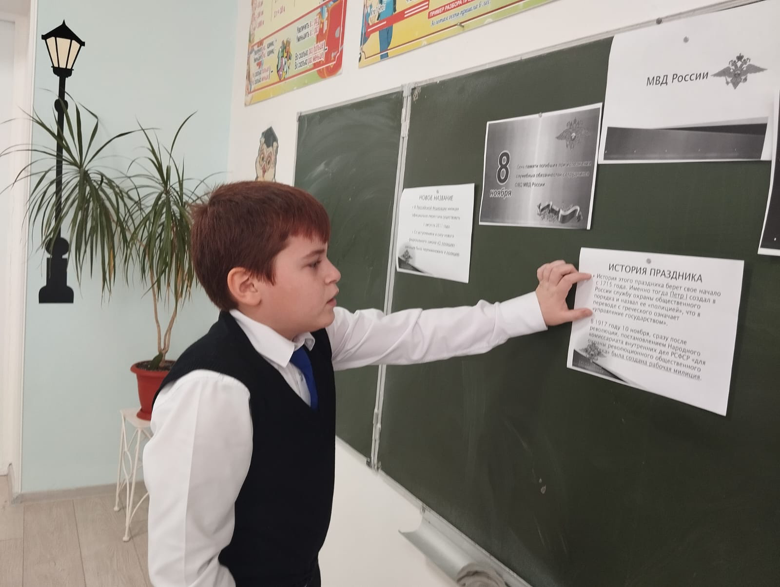 Ребята узнали о подвигах Героев Российской Федерации. Они отметили, что работа сотрудников МВД опасная, но очень необходимая. От их службы зависит порядок на улицах, они предотвращают и раскрывают преступления, занимаются защитой и охраной частной собственности, государственных и коммерческих объектов. Ребята вспоминали сотрудников милиции, погибших в годы Великой Отечественной войны.