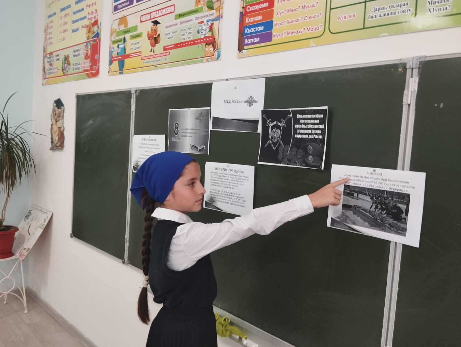 В МБОУ «СОШ №3 с. Алхан-Юрт» в 4 классе прошёл классный час в память о тех, кто погиб при выполнении своих служебных обязанностей – сотрудниках органов внутренних дел Российской Федерации.