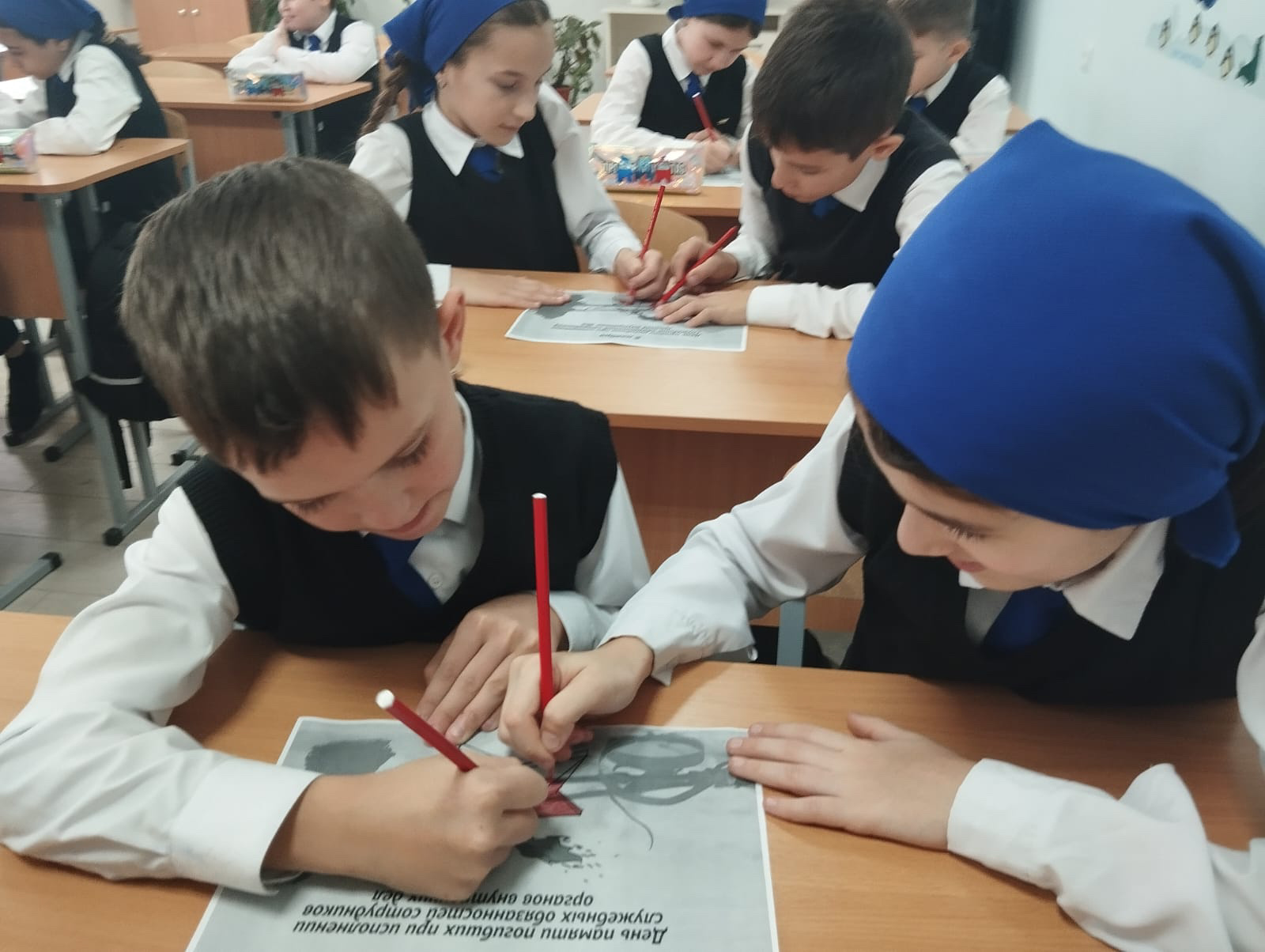 Учащиеся почтили память погибших минутой молчания.
