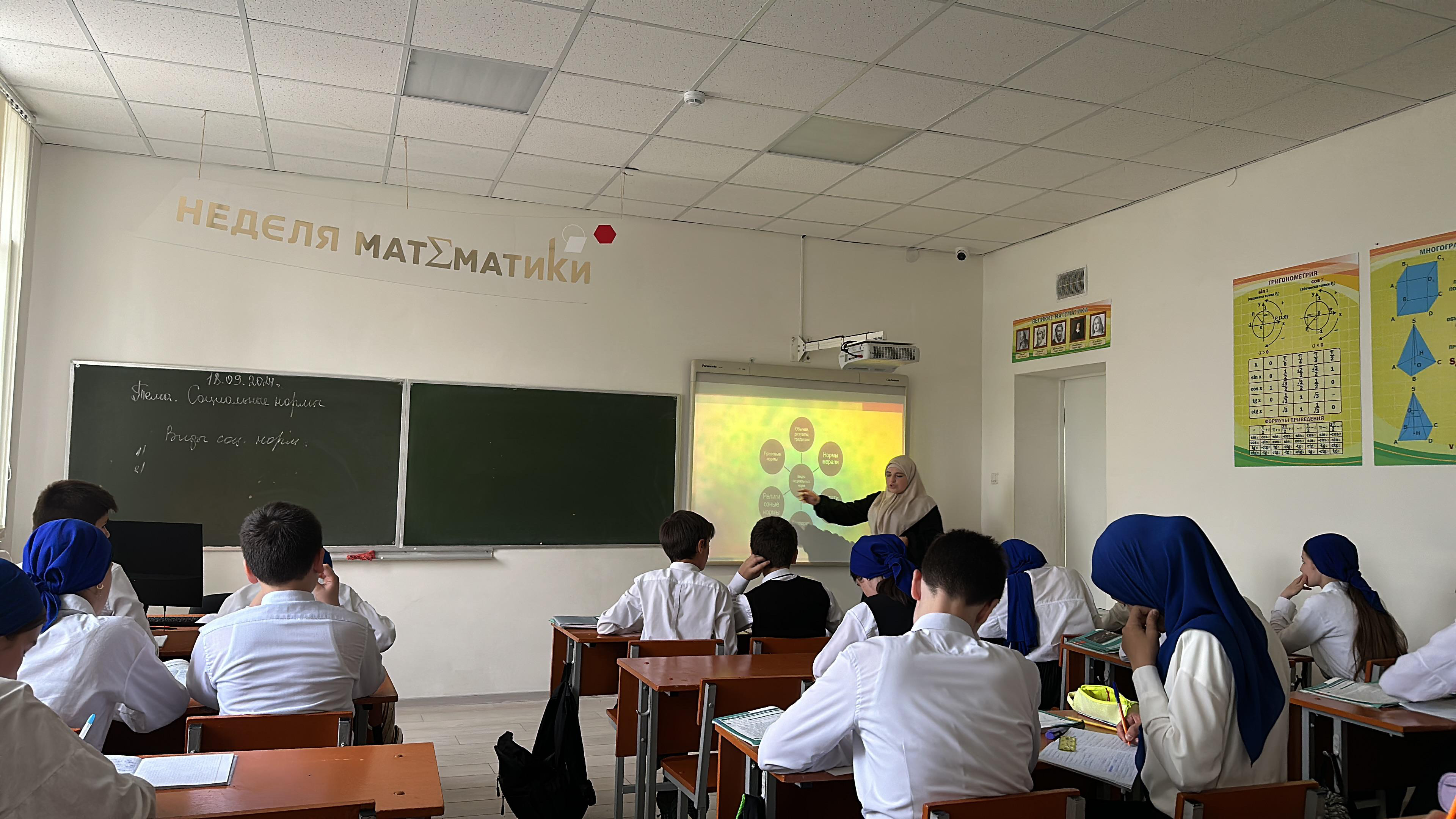 В соответствии с планом внутришкольного контроля, с целью изучения состояния и уровня преподавания математики, географии и истории, сегодня директор школы Алавдинова М. Л. посетила уроки истории в «7 «А», географии в 8 «Б» и математики в 9 «Б» классах.