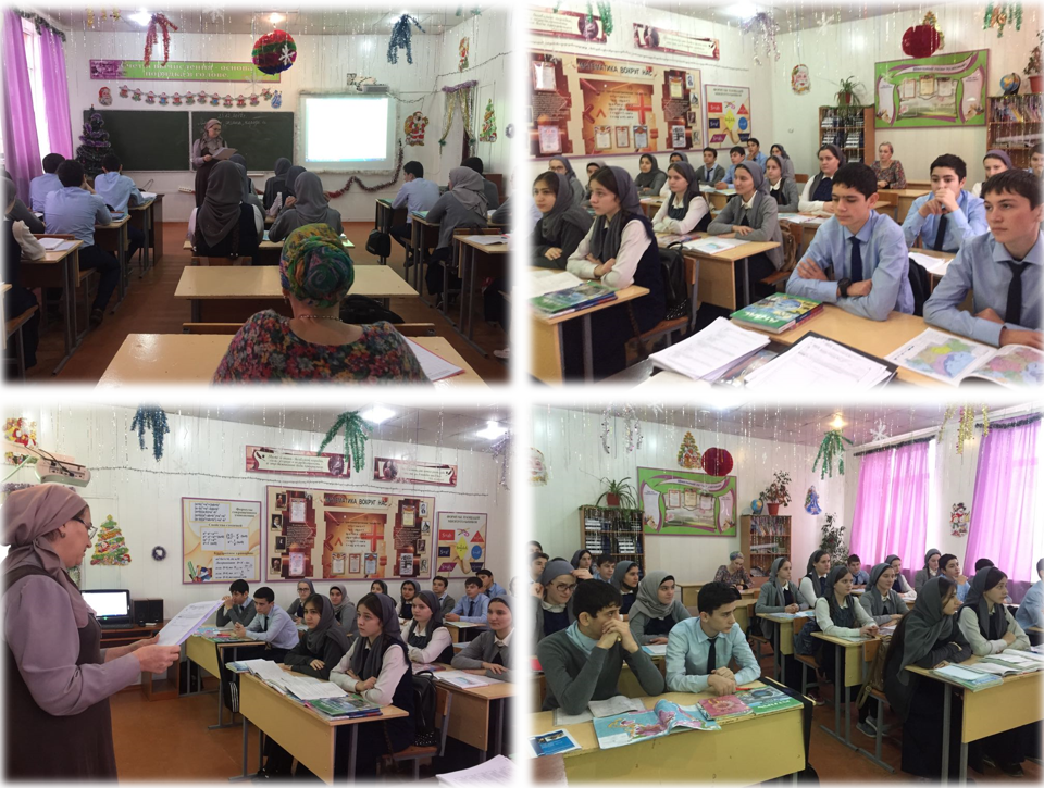 В ходе проверки 23.12.2017 г. З.Ш.Боприевой проверена соответствующая документация, посещены уроки учителей, реализующих проекты в 9, 11 класссах: урок литературы в 11 классе по теме «Определение «гримас» нового быта в сатирических произведениях В.В.Маяковского» (учитель Р.И.Нукаева), урок географии в 9а классе по теме «Материки, океаны, народы и страны» (учитель З.Ш.Исраилова).