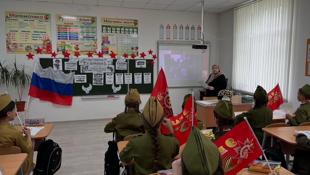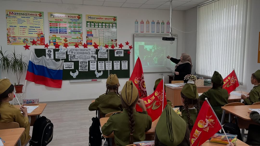 05.05.2025Сегодня в МБОУ СОШ №3 с. Алхан-Юрт прошел урок “Разговоры о важном”, посвященный 80-летию Победы в Великой Отечественной войне!Мы склоняем головы перед подвигом героев, отстоявших свободу и независимость нашей Родины. Учащиеся вспомнили о мужестве солдат, о героизме тружеников тыла и о важности сохранения исторической памяти. Вечная слава героям!