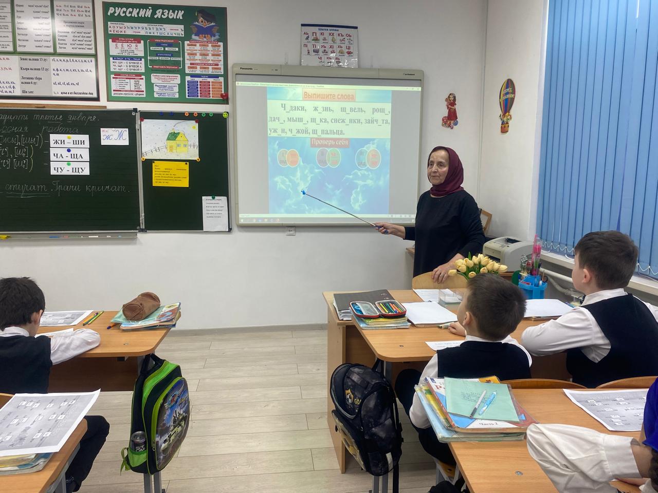 Спасибо нашим юным филологам за активную работу и Амнат Халидовне за такой увлекательный урок! Сохраняем правило в памяти: “ЖИ-ШИ пиши с буквой И!” ✍️